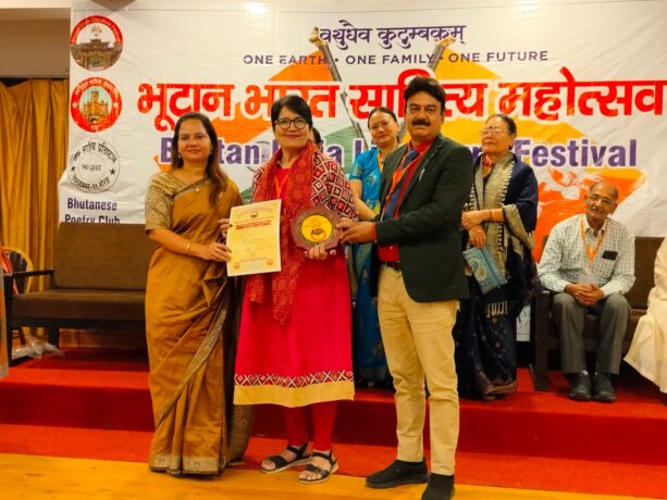 भूटान भारत साहित्य महोत्सव में मुंबई की वरिष्ठ कवयित्री अधिवक्ता रेखा किंगर रोशनी हुई सम्मानित
